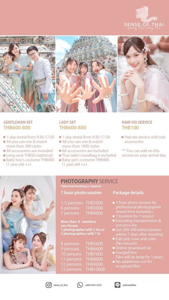思い出トラベルでは、SENSE OF THAI様で衣装レンタルをした後、近隣の有名寺院等の歴史的建造物を背景に写真撮影をするためのガイドも承ります!お気軽に公式LINEまでお問合せください↑