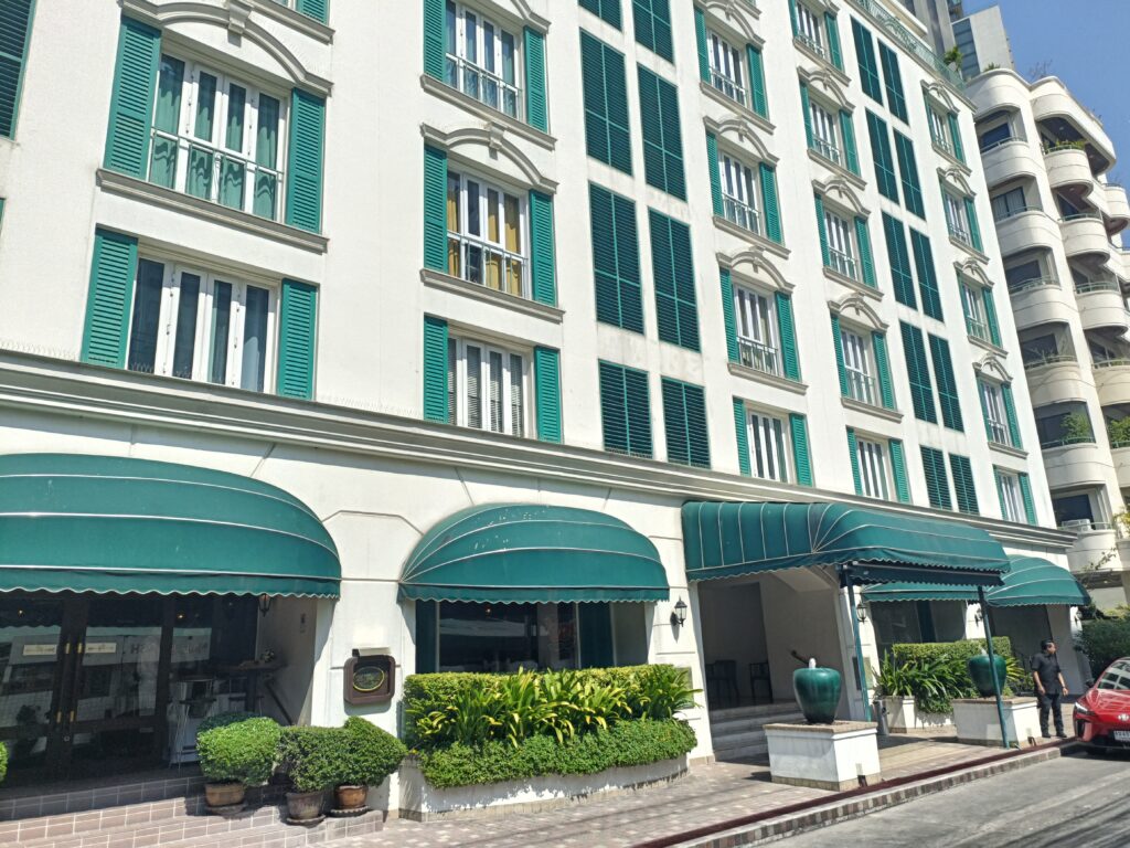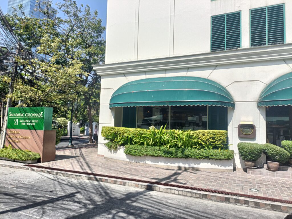 最寄り駅のBTSサラデーン駅から、徒歩7分程の距離にあるこちらのレストラン。緑の装飾が特徴的な外観になっています。