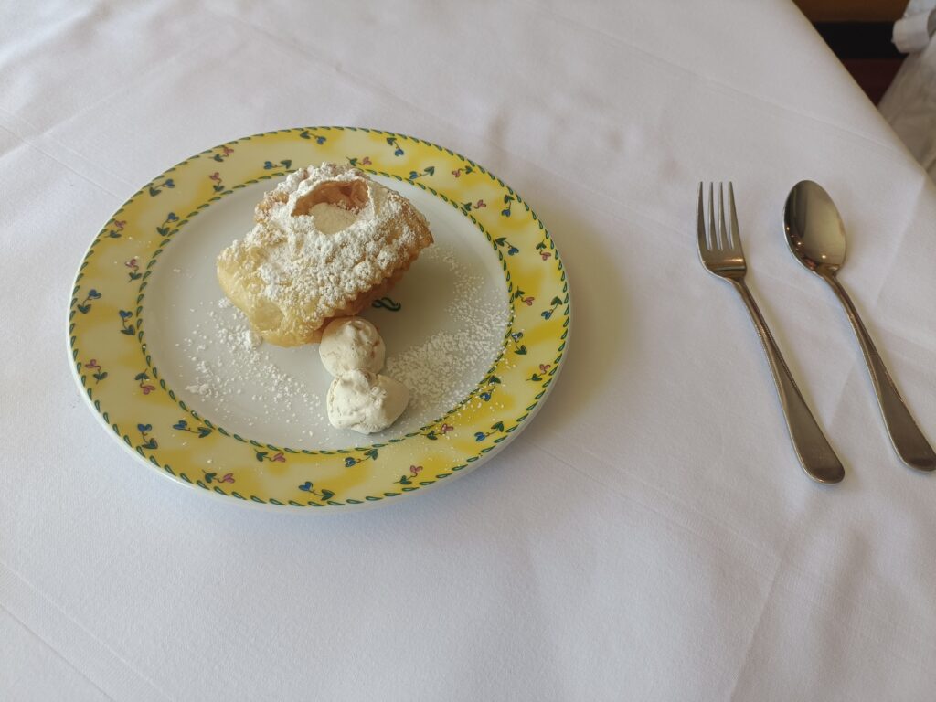 メニューをオーダーすると、単品メニューでも前菜のパンとデザートがついてきます。パンだけでもかなりのボリュームで、塩味が絶妙なトマトソースをパンに付けて食べると、非常に美味しい前菜でした。今回はカルボナーラを注文しましたが、非常に濃厚なチーズの味がメインとなり、チーズ好きには満足できる味では無いかと思いました。